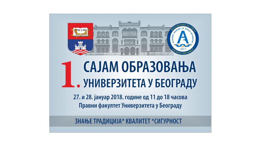 Током трајања Сајма, представници појединих факултета су присутни и на штандовима у холу Правног Факултета, за све евентуалне додатне информације које Вам могу бити од значаја. Први сајам образовања окупиће само факултете Универзитета у Београду. Центар за развој каријере Универзитета у Београду пружиће Вам током трајања сајма кроз програм „Припреми се – упиши се“, подршку серијом радионица у развоју знања и вештина, која ће Вам бити од значаја при наставку образовања или при запошљавању.